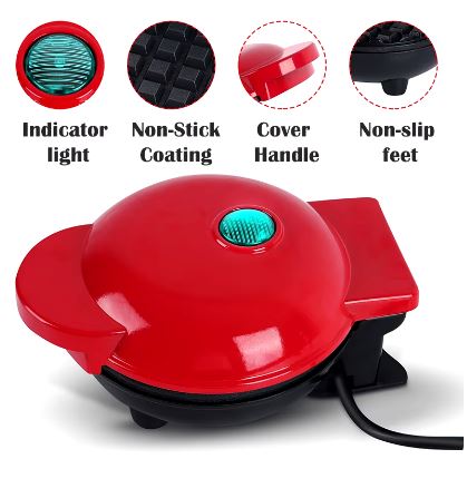 ¡Es ideal para los más peques de la casa! Con su diseño de la carita de Mickey, a los niños les encantará desayunar con sus personajes favoritos. Las placas de cocción son de teflón, así que los waffles no se pegarán y son muy fáciles de limpiar. Además, su superficie antiadherente permite que los waffles se cocinen parejitos y queden doraditos y crujientes. Aunque es pequeña y hace un waffle a la vez, es perfecta para una porción individual. No tiene placas intercambiables, pero su diseño de Mickey es súper lindo y seguro que los niños disfrutarán cada bocado. ¡Convierte el desayuno en una fiesta con la waflera Mini Mickey Mouse!